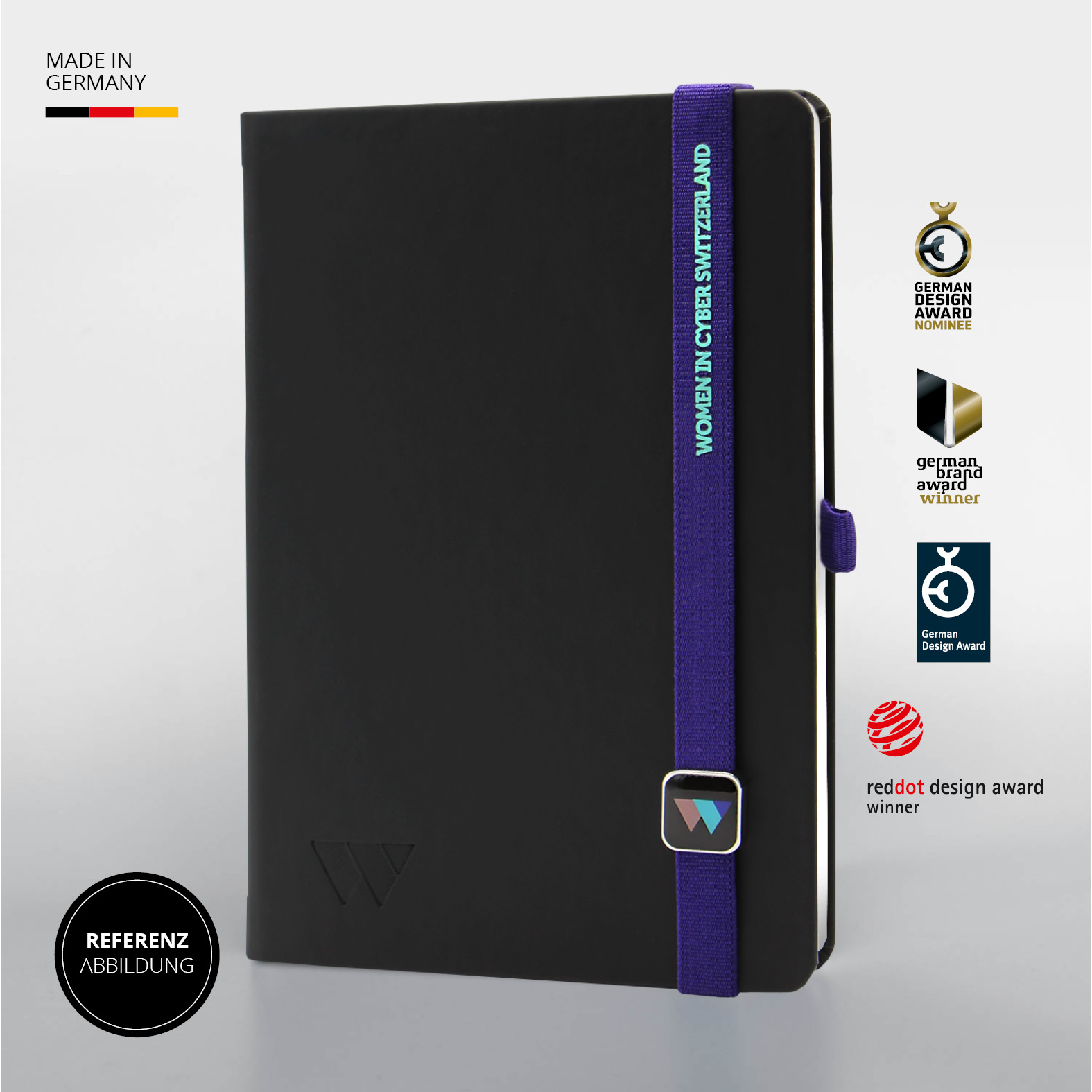 Das individuell gestaltete Lanybook® für Women in Cyber Switzerland verbindet technisches Know-how mit einem selbstbewussten Auftritt. Der elegante schwarze Einband trifft auf ein markantes Lanyband® in Lila, das durch den Silikondruck mit Logo zum visuellen Statement wird. Die hochwertige Verarbeitung und das klare Design spiegeln die Professionalität und Zielstrebigkeit der Community wider. Ob im Meeting, auf Konferenzen oder als exklusives Give-away – dieses Lanybook® ist mehr als ein Notizbuch: Es ist ein Zeichen für Sichtbarkeit, Zusammenhalt und Qualität.